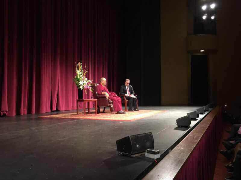 ཚོགས་ཁང་ནང་དུ་མི་གྲངས་ཆིག་སྟོང་བདུན་བརྒྱ་ལྷག་ཙམ་གྱིས་ཞབས་སྟེགས་ཡོད་སྟབས་ལག་ཁྱེར་ཡོངས་རྫོགས་ཆུ་ཚོད་བཞི་ལྔ་ཙམ་གྱི་དུས་ཡུན་ནང་དུ་རྫོགས་ཏེ་མི་མང་པོ་ལ་ལག་ཁྱེར་ཐོབ་མི་འདུག། གཙུག་ལག་སློབ་གྲྭའི་གོ་སྒྲིག་འགན་འཛིན་པས་༧རྒྱལ་དབང་ཀརྨ་པ་ནི་དེང་རབས་ན་གཞོན་གྱི་མིག་དཔེ་འོས་པའི་རླབས་ཆེན་གྱི་མི་སྣ་ཞིག་ཡིན་པ་དང་། ཁོང་གིས་འགན་ཁུར་ཆེན་པོས་ཁོར་ཡུག་སྲུང་སྐྱོབ་སོགས་ཀྱི་ཕྱག་རྗེས་ལ་བསྔགས་བརྗོད་དང་། གཙུག་ལག་སློབ་གྲྭས་ཇི་ལྟར་གསོལ་བ་བཏབས་པ་ལྟར་ཆིབས་བསྒྱུར་བཀའ་དྲིན་བསྐྱངས་གནང་བར་དགའ་སྤྲོ་དང་གུས་འདུད་ཀྱིས་འཚམས་འདྲི་ཞུས་སོང་། ༧དཔལ་རྒྱལ་དབང་ཀརྨ་པས་ཁོང་ཉིད་ད་ལན་ཨ་རི་ལ་ཕེབས་ཐེངས་གསུམ་པ་དེ་ཡིན་ལ་འདི་ནི་བཙན་བྱོལ་དུ་འབྱོར་རྗེས་ཕྱི་ཕྱོགས་སུ་ཕེབས་པའི་དུས་ཡུན་རིང་ཤོས་དེ་ཡིན་པར་བརྟེན་རང་དབང་གི་ཚོར་སྣང་ཆེན་པོ་ཞིག་བྱུང་བ་མ་ཟད་མ་འོང་པའི་མི་ཚེ་ནང་གི་མདུན་བསྐྱོད་ཀྱི་གོ་སྐབས་ཆེན་པོ་ཞིག་ལ་ངོས་འཛིན་བྱེད་ཀྱི་ཡོད་ཅེས་གསུངས་གནང་བ་དང་།