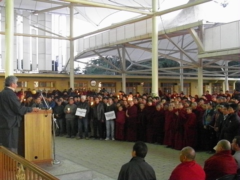 ཐེག་ཆེན་གཙུག་ལག་ཁང་དུ་སྐུ་མགྲོན་གཙོ་བོ་བོད་མི་མང་སྤྱི་འཐུས་མཁན་པོ་བསོད་ནམས་བསྟན་འཕེལ་མཆོག་དང་། ཧིན་བོད་མཛའ་འབྲེལ་ཚོགས་པའི་སྐུ་ཞབས་མི་རམ་ས་ཀར་སོགས་མཉམ་ཞུགས་ཀྱིས་སྐུ་ལུས་མེར་བསྲེགས་གནང་བ་དག་གིས་གཙོ་བོས་བོད་བསྟན་སྲིད་མི་རིགས་ཆེད་རང་སྲོག་བློས་བཏང་གནང་བའི་རྒྱལ་གཅེས་དཔའ་བོ་དཔའ་མོ་རྣམས་ཀྱི་ཆེད་སྐར་མ་གཅིག་རིང་མྱ་ངན་ངག་བཅད་གནང་འདུག